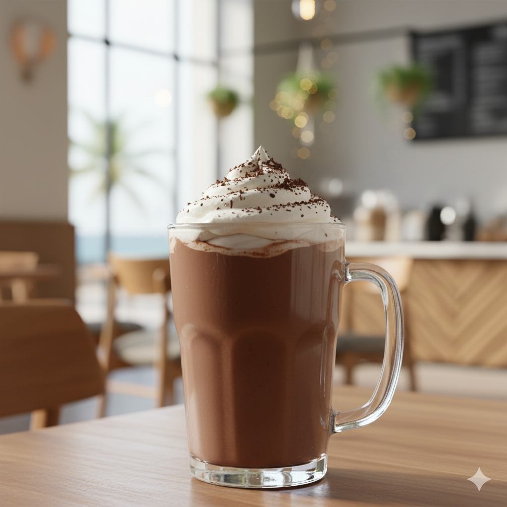 شکلات داغ غلیظ با تاچ خامه و پودر کاکائوی تلخ؛ همراه حس گرم و خاص روزهای سرد.