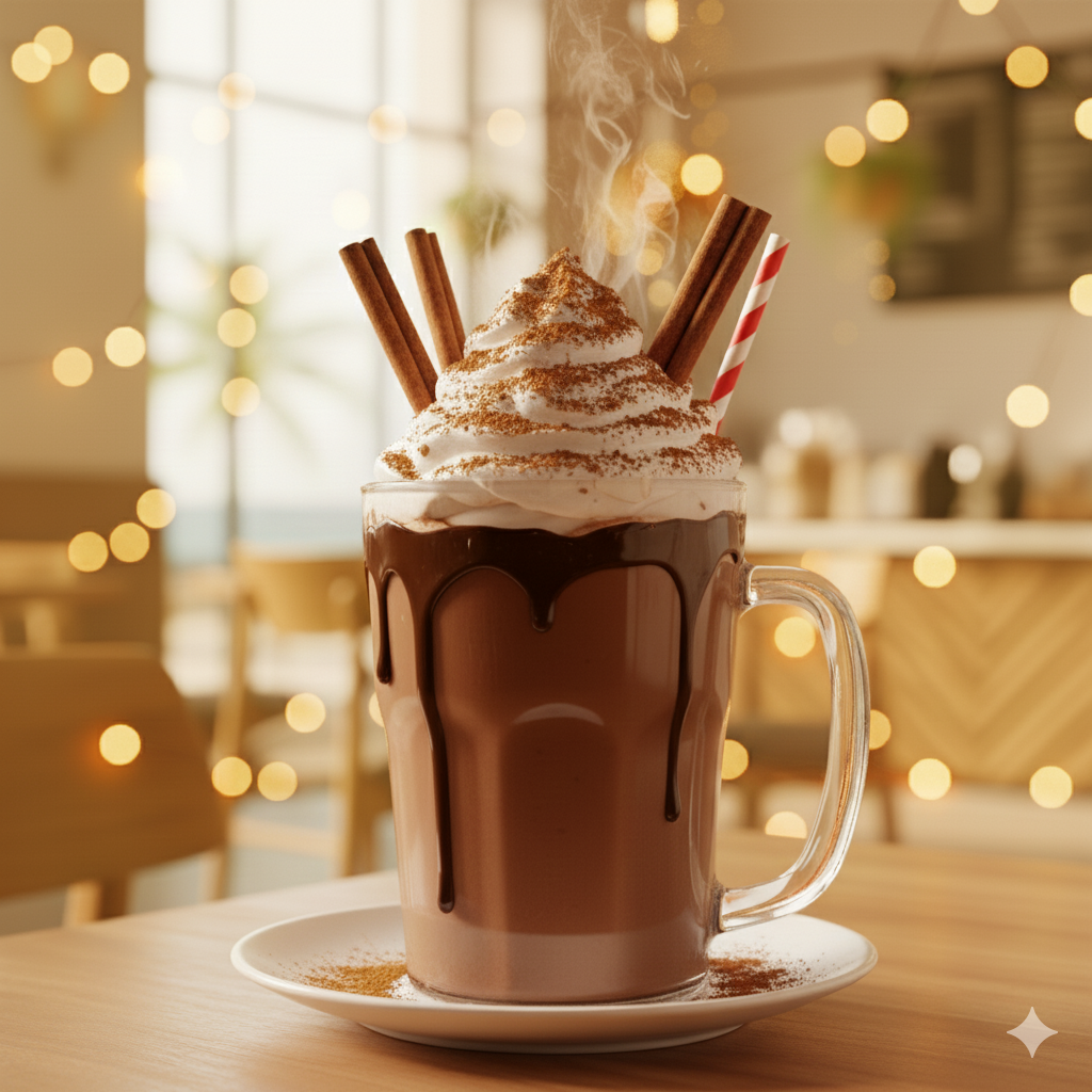 شکلات داغ با عطر دارچین و خامه کمحجم.